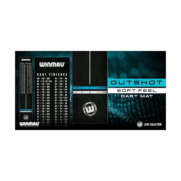 The world’s first full length soft-feel fibre dart mat featuring non-slip PVC composite edging and underlay. Features official tournament specification oche measurements and is printed with every finish from 100 to 41. Non-slip underlay lays flat to the floor and the Outshot Mat is versatile, light-weight and easy to roll up and store away.