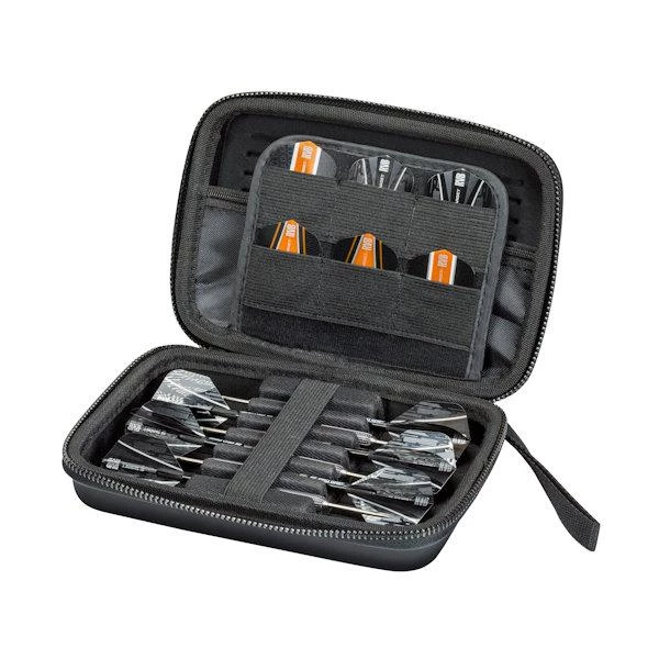 We are pleased to introduce the Takoma XL. A strong EVA material is used to maintain rigidity and give protection to the darts and accessories inside. While inside the wallet a velvet layer has been added for a soft feel and to be scratch resistant. The darts themselves are held fully assembled with an elastic strap on top to prevent movement inside. The wallet is thick enough to ensure the flights don’t become crush. Also inside the case are two zip locked pouches to hold spare accessories. Accessories and darts sold separately.